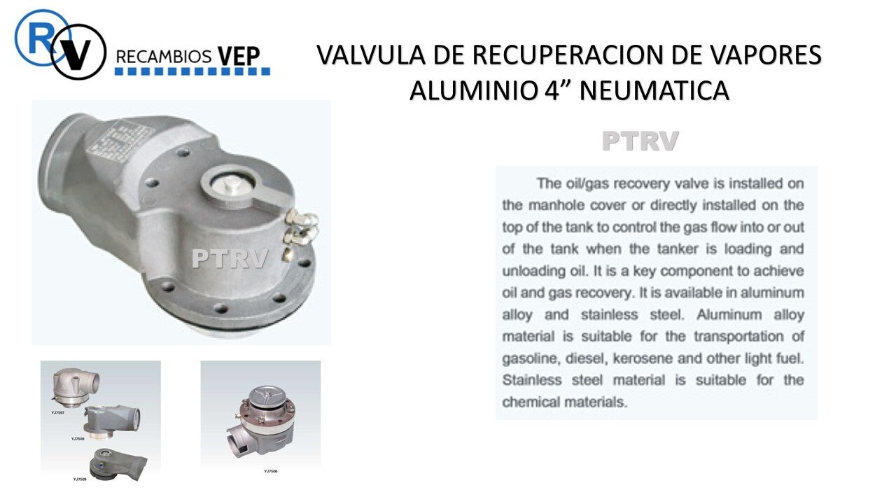 VALVULA RECUPERACION DE VAPORES 4" NEUMATICA ALUMINIO